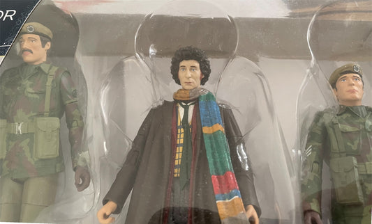 Dr Doctor Who Unit 1975 - Terror Of The Zygons Action Figure set - Includes 4th Dr With Interchangeable Head, Sgt Benton & Unit Soldier - Brand New Factory Sealed.
