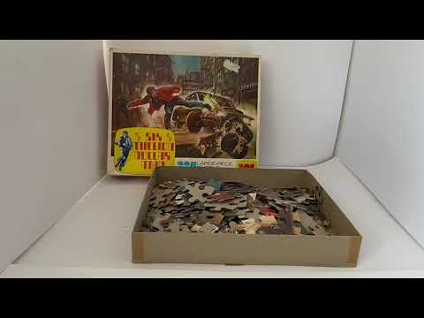 The Six Million Dollar Man Vintage 1976 Whitman 224 Large Piece Jigsaw Puzzle Number 7757 Animated Steve Austin Destroys Car - In The Original Box