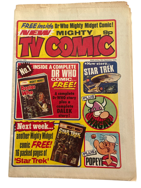 Vintage 18th September 1976 First Issue Of The New Mighty TV Comic Weekly Magazine (Issue No. 1292) With The Free Gift - Mighty Midget Dr Who Comic - Ultra Rare - Former Shop Stock