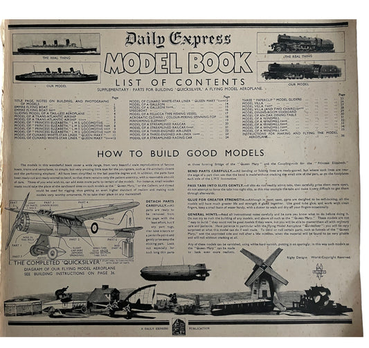 Vintage 1930's Ultra Rare Daily Express Model Book - 21 Fine Scale Models And A Model Aeroplane Which Flies - Fantastic Condition Unused - Former Shop Stock
