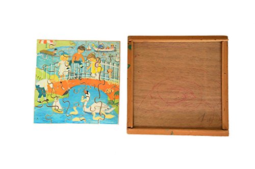 Vintage 1950's 25 Piece Wooden Jigsaw In Wooden Frame - Playing In The Park - Rare …