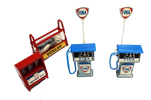 Vintage 1950's / 1960's Diecast Master Model Build-A-Garage - Garage Accessories Set Includes Fina Petrl Pumps - Fina Signs - Esso Motor Oil - Dunlop Tyres - Complete In Original Box …