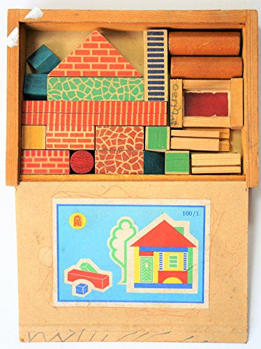 Vintage 1950's / 1960's Plywood House Block Puzzle In The Original Box Wooden Box …