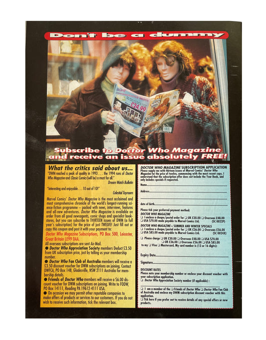 Vintage BBC Doctor Dr Who Magazine Issue Number 208 19th January 1994