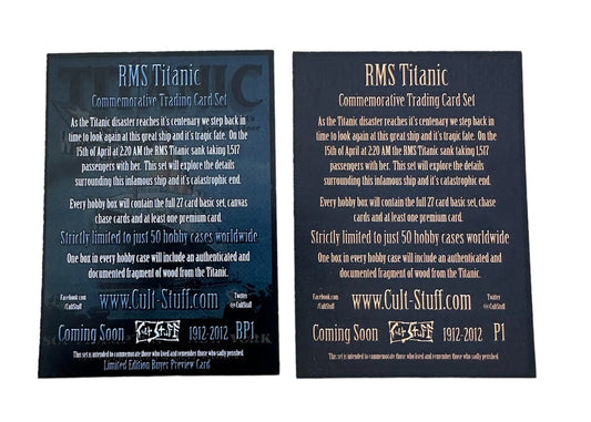 Vintage Cult Stuff 2012 RMS Titanic White Star Line 100 Anniversary Commemorative Trading Card Set Limited Edition Preview Cards P1 and BP1 - Very Rare - Former Shop Stock