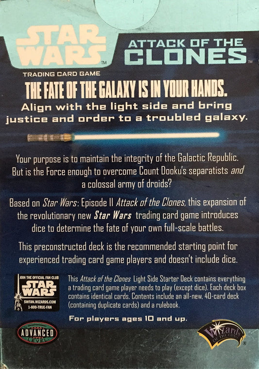 Star Wars Attack Of The Clones Light Side Starter Deck Trading Card Game. The Fate Of The Galaxy Is In Your Hands - Shop Stock Room Find