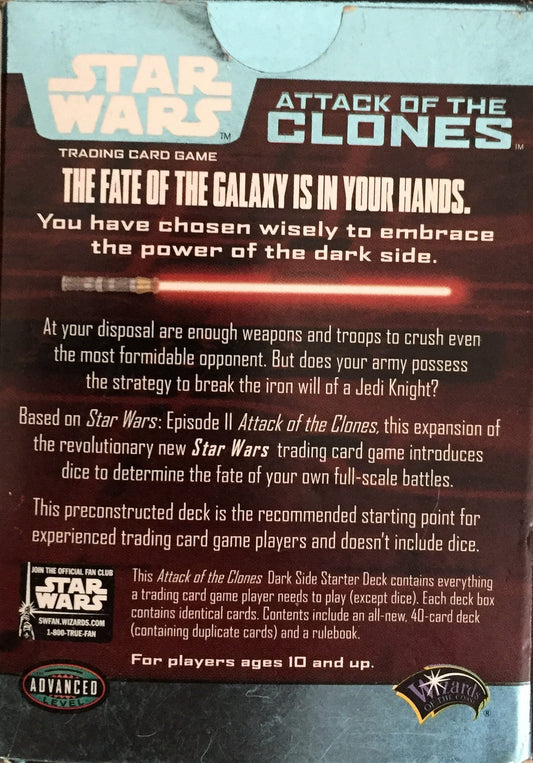 Star Wars Attack Of The Clones Dark Side Starter Deck Trading Card Game - Brand New Shop Stock Room Find