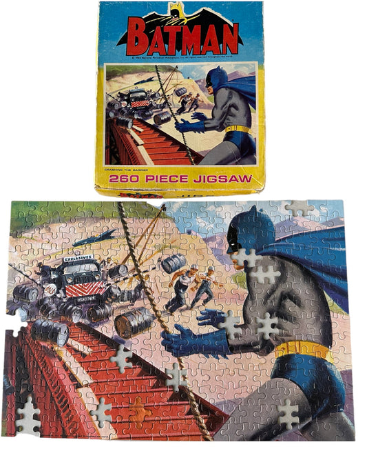 Vintage 1966 Batman 260 Piece Jigsaw Puzzle Crashing The Barrier In The Original Box - Ultra Rare