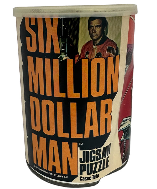 Vintage 1975 American Publishing - The Six Million Dollar Man 200 Piece Artwork Jigsaw Puzzle Number 1240 Steve Austin Saves The Girl - New In Sealed Tin - Shop Stock Room Find
