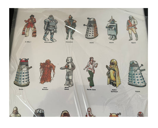 Vintage Doctor Dr Who Framed Display 1975 Weetabix Series I Full Set Of 24 Cards On Uncut Sheet - Signed by Gordan Archer The Artist - Mint Condition