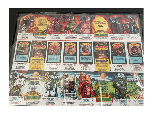 Vintage Doctor Dr Who Framed Display 1977 Weetabix Series II Full Set Of 24 Cards On Uncut Sheet - Signed by Gordan Archer The Artist