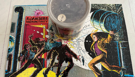 Vintage 1975 American Publishing - The Six Million Dollar Man 200 Piece Artwork Jigsaw Puzzle Number 1240 - Danger Radioactivity - Fantastic Condition - 100% Complete In The Tin
