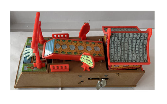Vintage 1960's Yone Tin Plate Clockwork Wind Up Hand Grabbing Money Box Bank - Fully Working - In The Original Box - Shop Stock Room Find