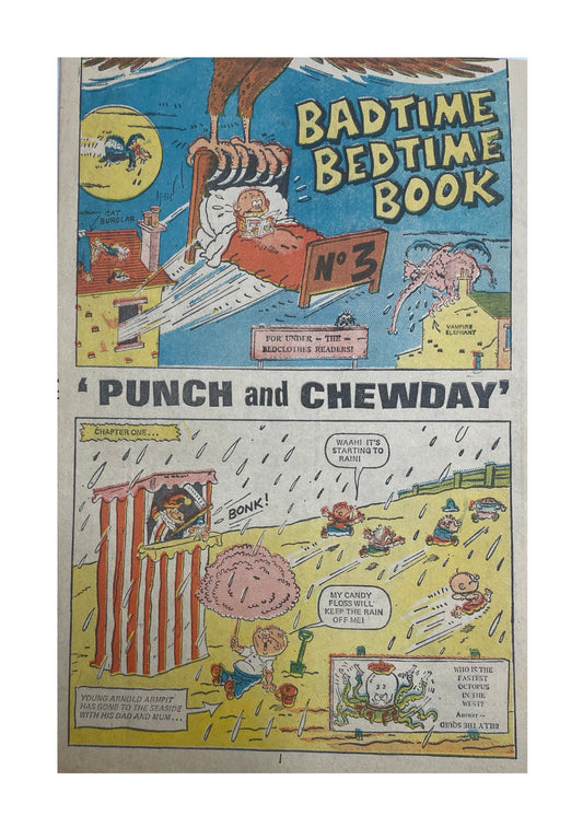 Vintage 1975 Monster Fun Comic Issue No. 3 With Super Shaking Skeleton Free Gift And Badtime Bedtime Book Pull Out - 28th June 1975 - Very Good Condition