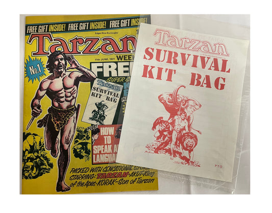 Vintage 1977 Tarzan Weekly Comic Magazine Number 1 - Fantastic First Issue - With The Free Survival Bag - June 11th 1977 - Former Shop Stock