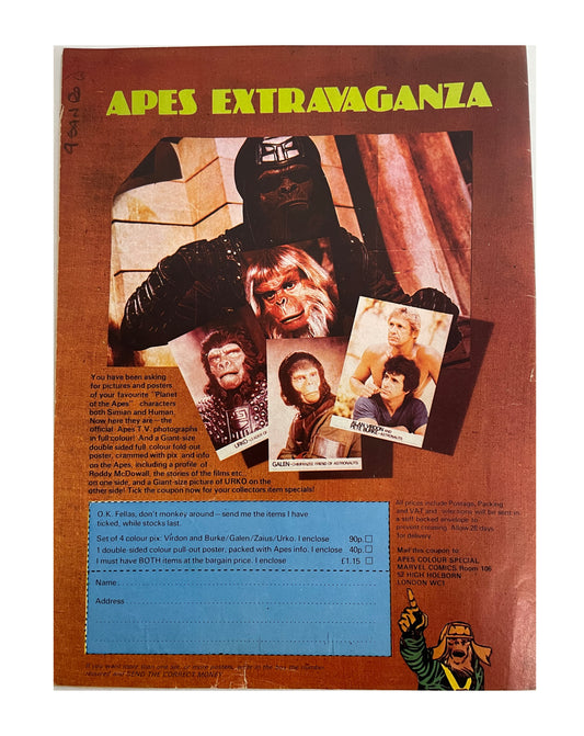 Vintage 1975 Marvels Comics - Planet Of The Apes Comic Issue No. 51 - October 11th 1975 - Former Shop Stock