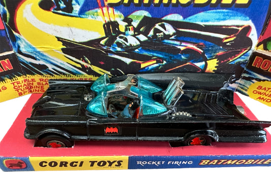 Vintage Corgi 1966 First Release Rocket Firing Batmobile Diecast Replica Vehicle With Mini Figures Number 267 - Boxed With Display Plinth