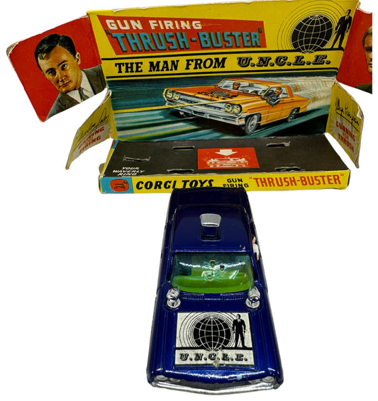 Vintage Corgis 1966 The Man From Uncle Thrush Buster Oldmobile Super 88 Diecast Model Vehicle - In the Original Box With Display Plinth