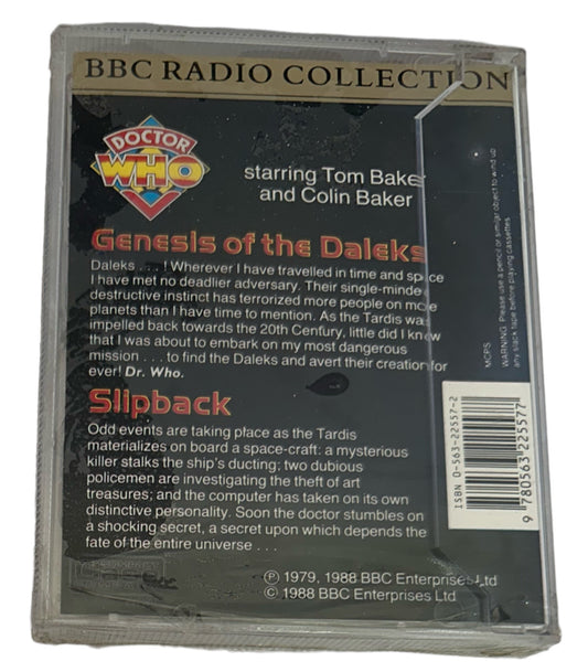 Vintage 1988 BBC Radio Collection - Doctor Dr Who - Genesis Of The Daleks & Slipback Double Audio Cassette Set - Factory Sealed Shop Stock Room Find