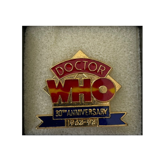 Vintage 1993 Doctor Dr Who 30th Anniversary Logo Lapel Pin Badge 1963-1993 - In The Original Box - Brand New Shop Stock Room Find