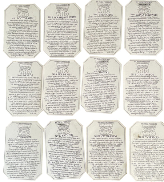 Vintage Ty Phoo 1976 The Amazing World Of Doctor Who Full Set Of 12 Octagonal Character Cards - Mint Condition - Ex Shop Stock