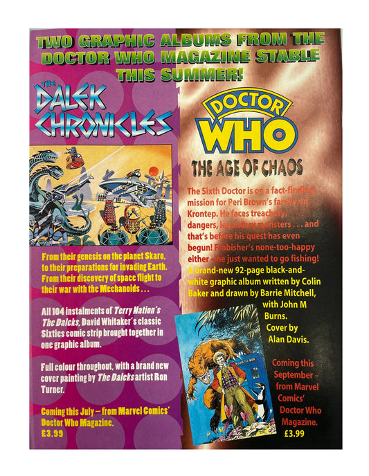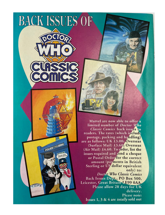 Vintage 1994 Marvels Doctor Dr Who Classic Comics Full Colour Issue 21 Comic 22nd June 1994 - Brand New Shop Stock Room Find