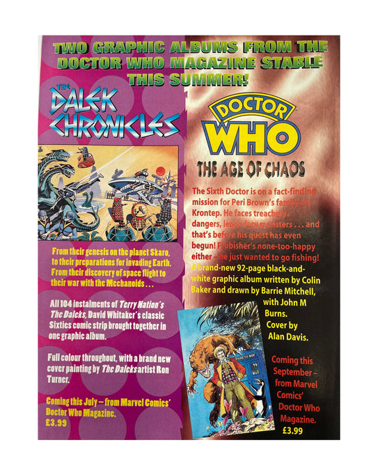 Vintage 1994 Marvels Doctor Dr Who Classic Comics Full Colour Issue 24 Comic 14th September 1994 - Brand New Shop Stock Room Find