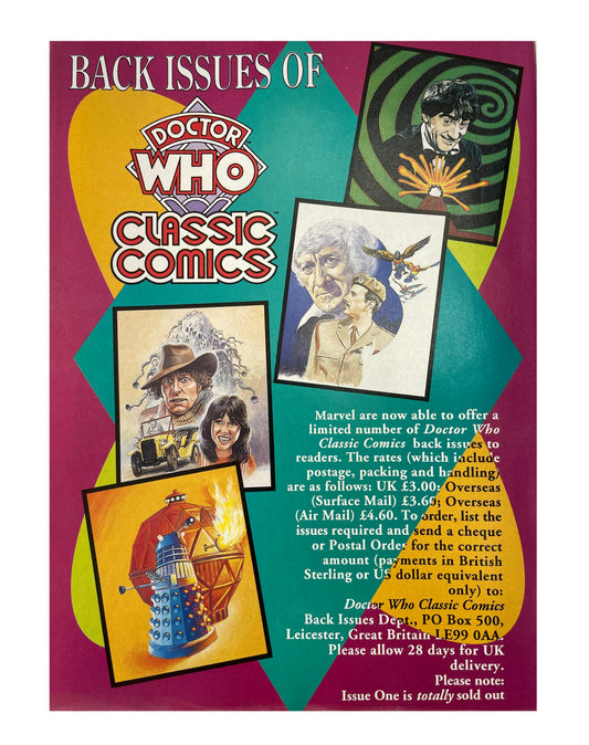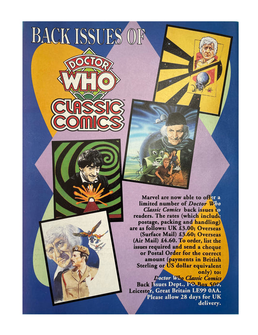 Vintage 1993 Marvels Doctor Dr Who Classic Comics Full Colour Issue 12 Comic 13th October 1993 - Brand New Shop Stock Room Find