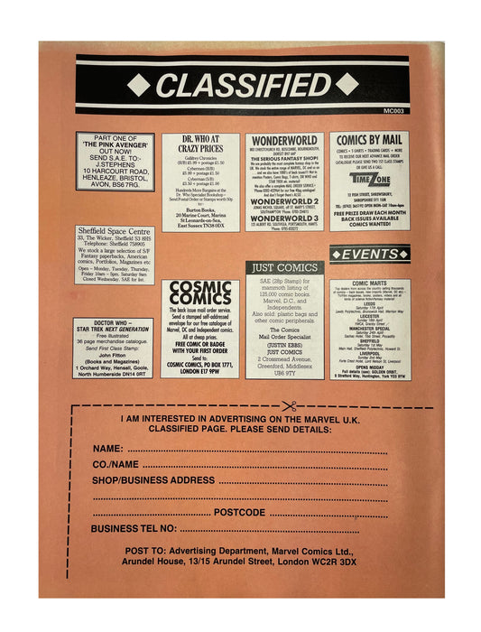 Vintage 1993 Marvel Doctor Who Classic Comics Third Full Colour Issue Comic 3rd February 1993 - Brand New Shop Stock Room Find