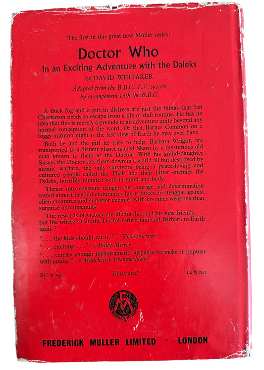 Vintage 1965 Doctor Dr Who In An Exciting Adventure With The Daleks By David Whitaker Hardback Book With Grey Dust Cover - Former Library Book