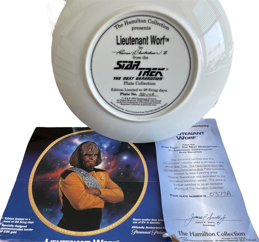 Vintage 1993 The Hamilton Collection Star Trek The Next Generation Lieutenant Worf 5th Anniversary Limited Edition Commemorative Plate - Shop Stock Room Find