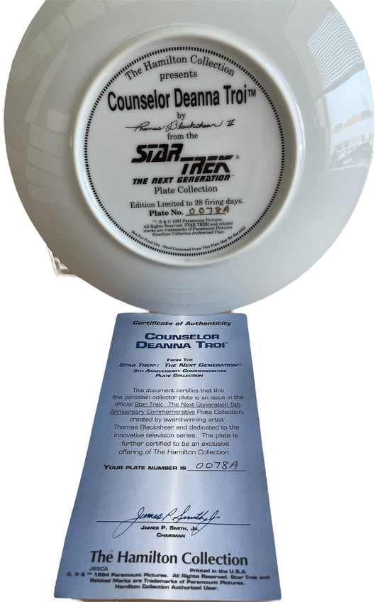 Vintage 1993 The Hamilton Collection Star Trek The Next Generation Counselor Deanna Troi 5th Anniversary Limited Edition Commemorative Plate - Shop Stock Room Find