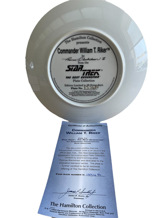 Vintage 1993 The Hamilton Collection Star Trek The Next Generation Commander William T. Riker 5th Anniversary Limited Edition Commemorative Plate - Shop Stock Room Find