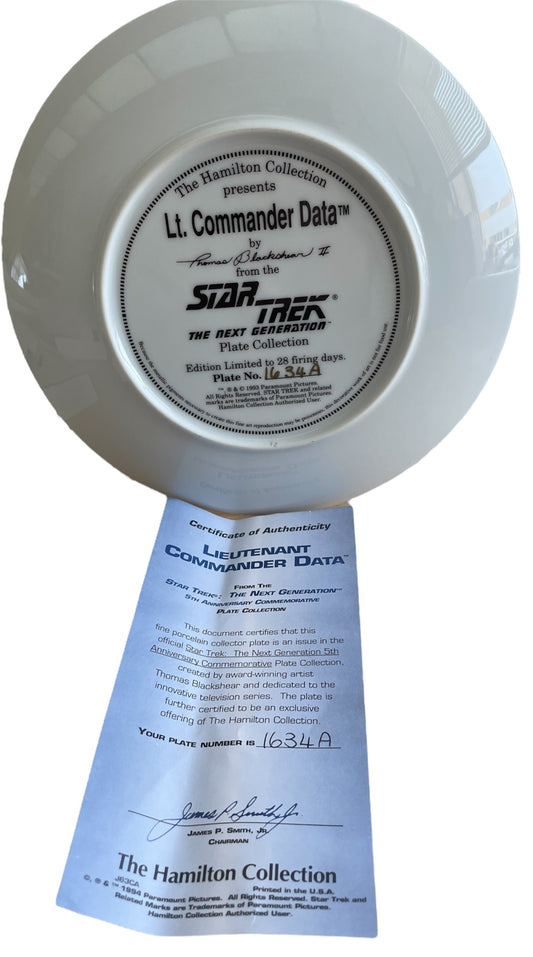 Vintage 1993 The Hamilton Collection Star Trek The Next Generation Lieutenant Commander Data 5th Anniversary Limited Edition Commemorative Plate - Shop Stock Room Find