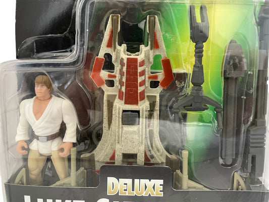 Vintage Kenner 1996 Star Wars The Power Of The Force Deluxe Luke Skywalker Action Figure With Desert Sport Skiff - Brand New Factory Sealed Shop Stock Room Find