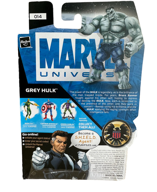 Vintage 2008 Marvel Universe Series 1 - No. 014 Grey Hulk 3 3/4 Inch Action Figure With SHIELD File And Secret Code - Brand New Factory Sealed Shop Stock Room Find