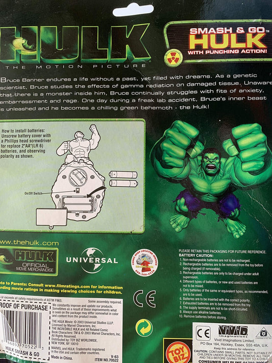 Vintage 2003 Hulk - Smash & Go Hulk Action Figure With Punching Action On Street Rubble Base - Brand New Factory Sealed Shop Stock Room Find