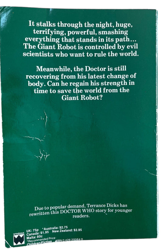 Vintage 1980 Junior Doctor Dr Who And The Giant Robot - Target Paperback Book By Terrance Dicks