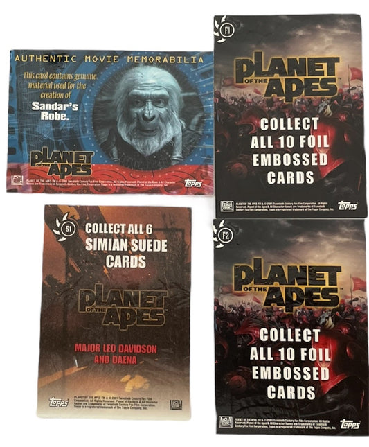 Vintage Topps 2001 Planet Of The Apes The Movie Set Of 4 Chase Cards Including 2 x Foil, 1 x Costume & 1 x Simian Suede - Former Shop Stock