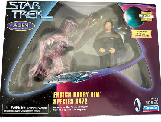 Vintage Playmates 1998 Star Trek Voyager Alien Series Edition Ensign Harry Kim And Species 8472 Action Figures from Star Trek Voyager Episode Scorpian - Brand New Factory Sealed Shop Stock Room Find