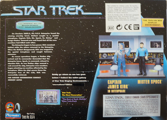 Vintage Playmates 1999 Star Trek Starfleet Command International Edition Captain James T Kirk In Spacesuit In Interspace And Mister Spock Action Figures from The Tholian Web - Brand New Factory Sealed Shop Stock Room Find