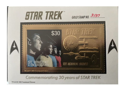 Vintage 1996 Star Trek The Original Series Limited Edition Gold Stamp Commemorating 30 Year Anniversary Star Ship ST Vincent & The Grenadines In Presentation Wallet With COA - Brand New Shop Stock Room Find