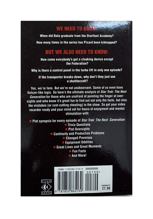 Vintage 1993 Star Trek - The Nitpickers Guide For Next Generation Trekkers - Paperback Book - Shop Stock Room Find