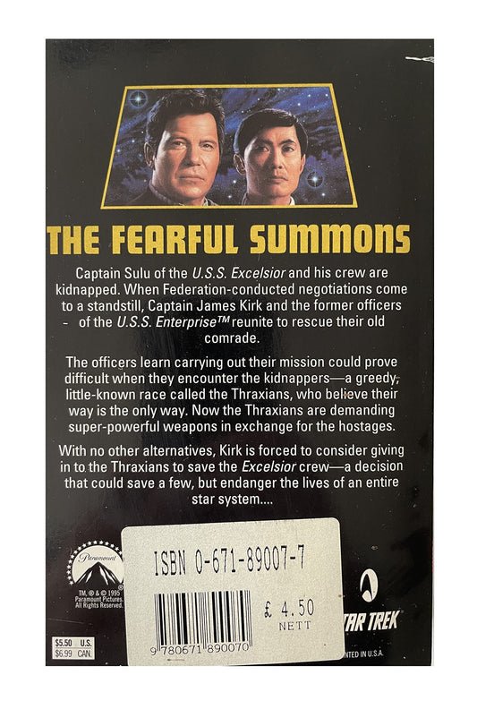 Vintage 1995 Star Trek Novel - The Fearful Summons - Paperback Book - By Howard Weinstein - Shop Stock Room Find