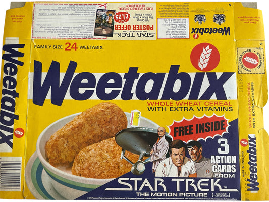 Vintage 1979 Star Trek The Motion Picture Weetabix Breakfast Cereal Box - Vulcan Shuttle With Three Free Figure Cards - Unused And Uncut - Ex Shop Stock