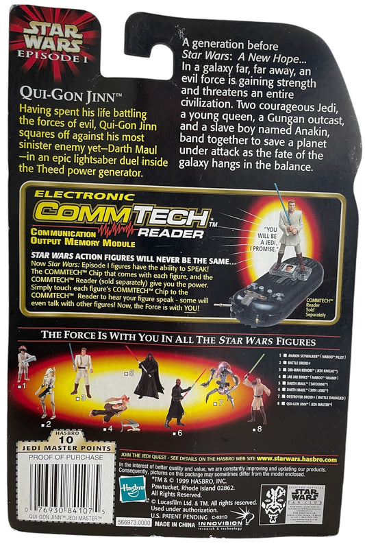 Vintage 1999 Star Wars Episode 1 The Phantom Menace Qui-Gon Jinn Jedi Master Action Figure With Lightsaber And Commlink Plus Comm Talk Chip - Factory Sealed Shop Stock Room Find