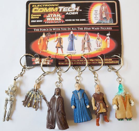 Vintage 1999 Star Wars Episode I The Phantom Menace Action Figure Keyring Set of 6 Figures On The Original Card - Brand New Shop Stock Room Find