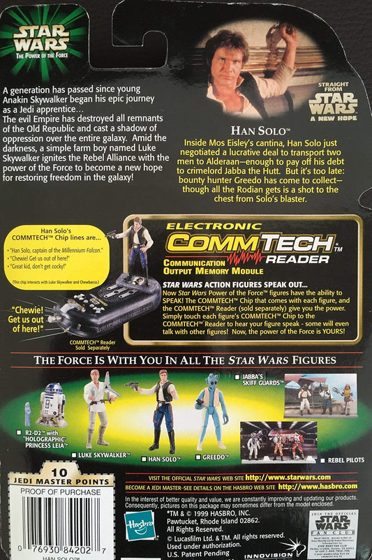 Vintage 1999 Star Wars The Power Of The Force Han Solo Action Figure With Comm Talk Chip