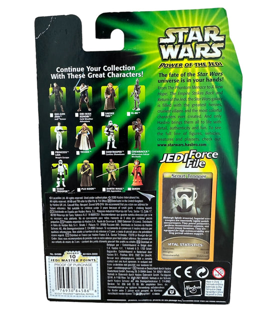 Vintage 2000 Star Wars The Power Of The Jedi Scout Trooper Action Figure With Jedi Force File - Brand New Factory Sealed Shop Stock Room Find