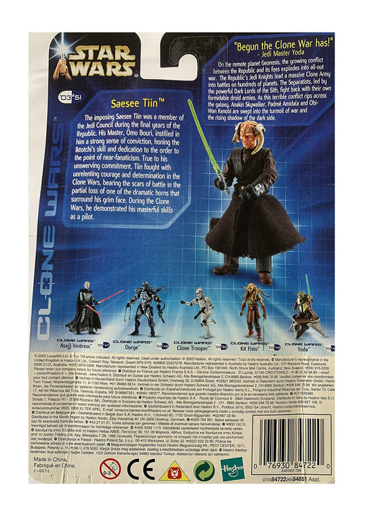 Vintage 2003 Star Wars The Clone Wars Saesee Tiin Jedi Master Action Figure - Brand New Factory Sealed Shop Stock Room Find